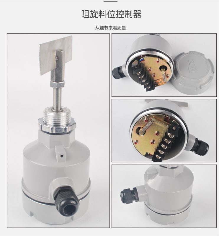敞開或壓力傳輸送容器內(nèi)料位的控制。當(dāng)料位碰到儀表的旋轉(zhuǎn)翼片時(shí),控制器的微動(dòng)開關(guān)觸點(diǎn)輸出報(bào)警或控制信號。
