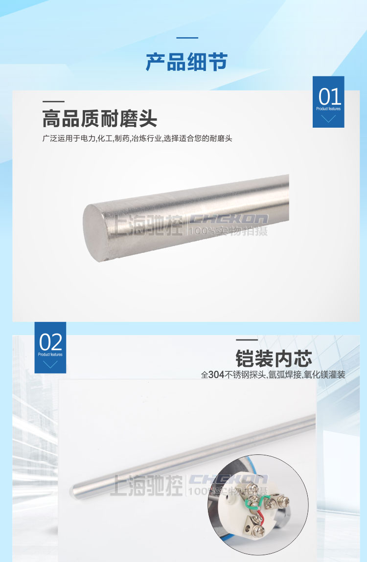 耐磨熱電阻和耐磨熱電偶一樣都是電廠循環(huán)流化訂鍋爐,沸騰鍋爐,粉磨煤機造氣爐和水泥廠系列窯頭,窯尾,爐頭罩及化工,冶煉等高溫耐磨環(huán)境較為理想的高技術(shù)類專用產(chǎn)品,耐磨熱電阻博采眾長,采用獨特的工藝配方,在失態(tài)平衡中制作出耐磨合金該產(chǎn)品與普通不銹鋼金屬,金屬陶瓷保護管,與市場上同類耐磨合金保護管相比,其使用壽命提高1-5倍.由于環(huán)境溫度差,溫控點過高,振動較大,鼓風(fēng)機風(fēng)速過高,磨損嚴重,造成溫度測量非常困難,使用壽命很短暫,一般的耐磨合金只有10-90天就磨透損壞,燒彎,折斷,造成熱電阻損壞,給用戶帶來很大的損失和不必要的麻煩,耐磨型熱電偶彌補了這個缺點.